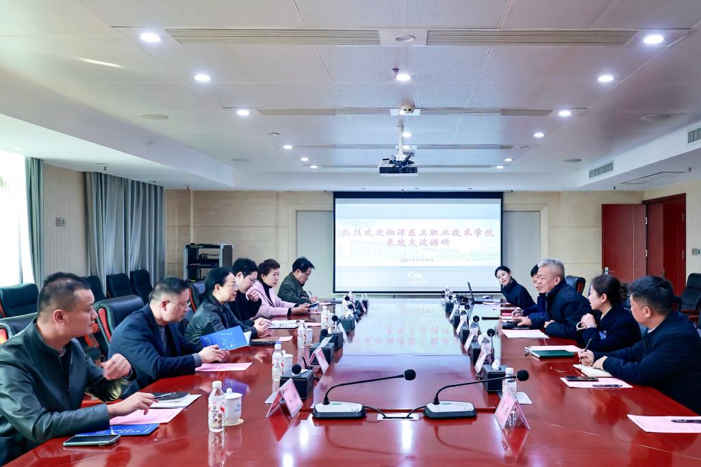 12月3日下午,湘潭医卫职业技术学院校长廖晓燕率队来我院调研交流。我院院长刘喜宾、党委副书记严灿热情接待来访嘉宾,并共同组织召开两校交流座谈会。双方围绕湖南省高职学校办学能力评价、五金新基建等重点议题展开深入研讨。两校质量管理、教务、人事、财务等相关职能部门负责人参加会议。