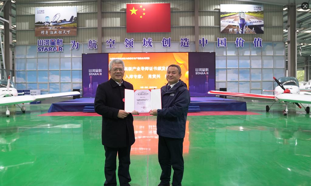 交流尾声,刘喜宾代表全国航空装备制造与维修行业产教融合共同体,向肖黄兴颁发了产业导师入库证书。肖黄兴表示,这份证书既是对个人的认可,更是对山河星航在通航领域技术积累与人才理念的肯定,今后将认真履行产业导师职责,助力学院培养更多适应产业需要的高素质应用型人才。