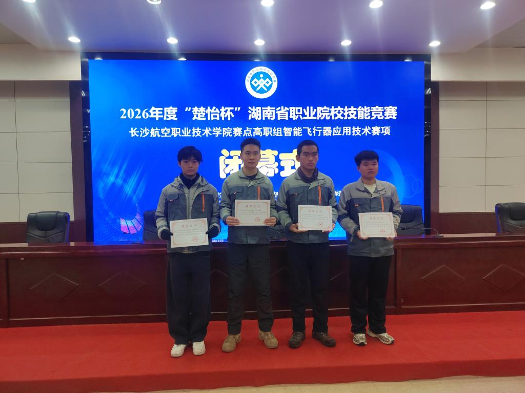2月6日至7日,2026年度“楚怡杯”湖南省职业院校技能竞赛“智能飞行器应用技术”赛项在我院成功举办。本次比赛共有来自全省29所职业院校的53支队伍、106名选手参与角逐。我院选派的两支代表队凭借扎实的专业功底与出色的临场发挥,在激烈竞争中脱颖而出,双双荣获一等奖,充分展现了我院在该领域的综合实力与人才培养水平。