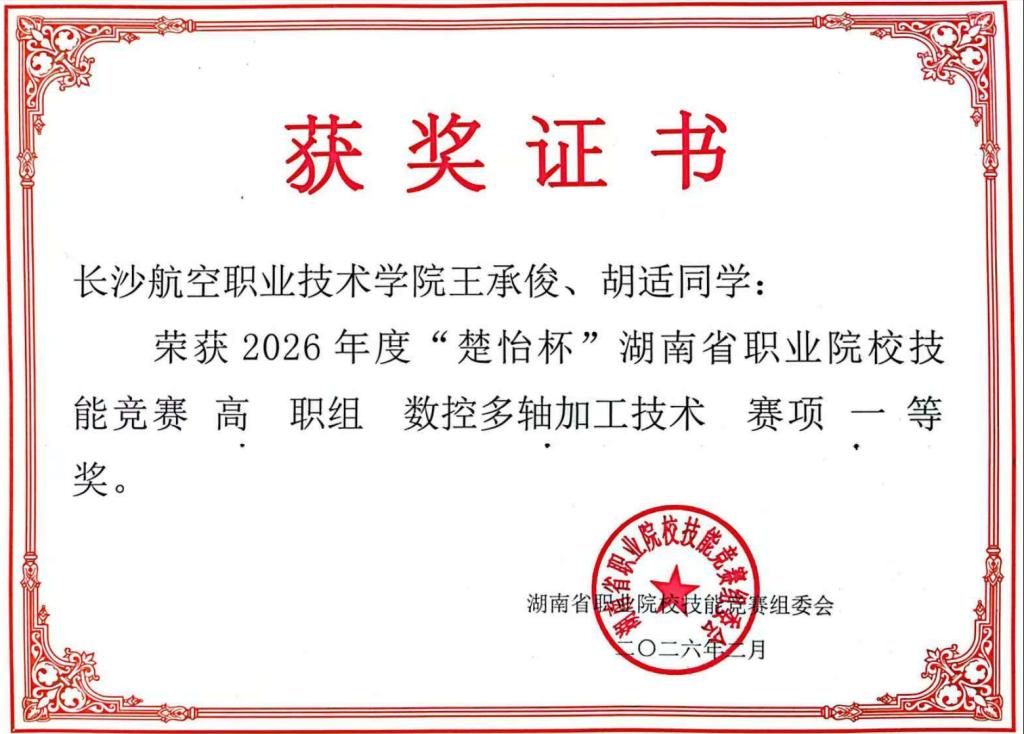 喜报!我院在2026年度“楚怡杯”湖南省职业院校技能竞赛“数控多轴加工技术”赛项斩获2个一等奖