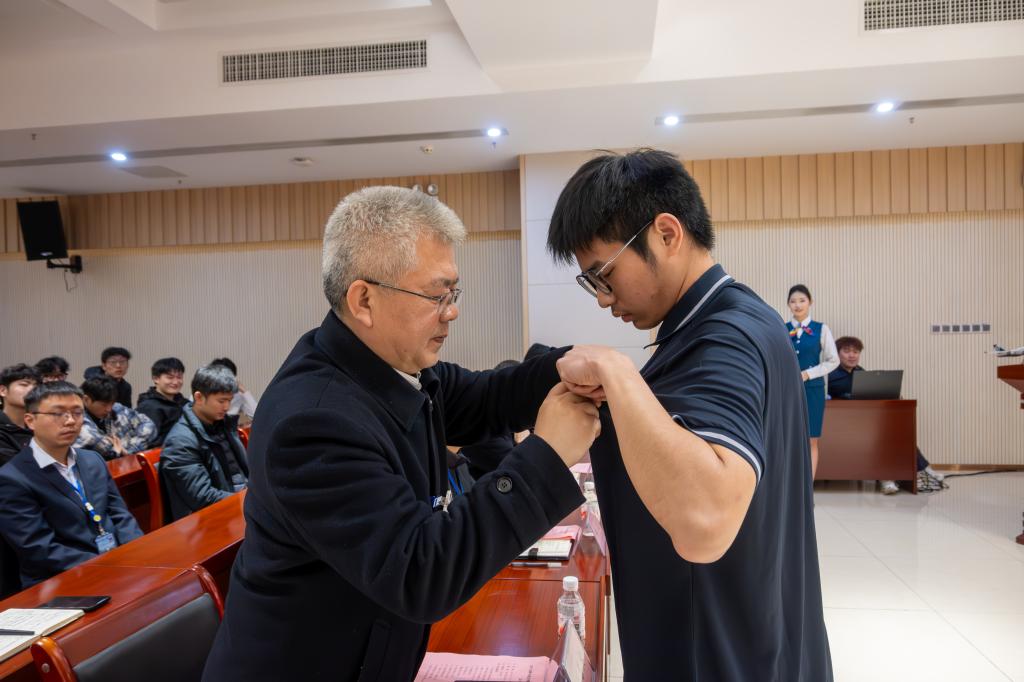 校企双方领导为学生佩戴企业胸针
