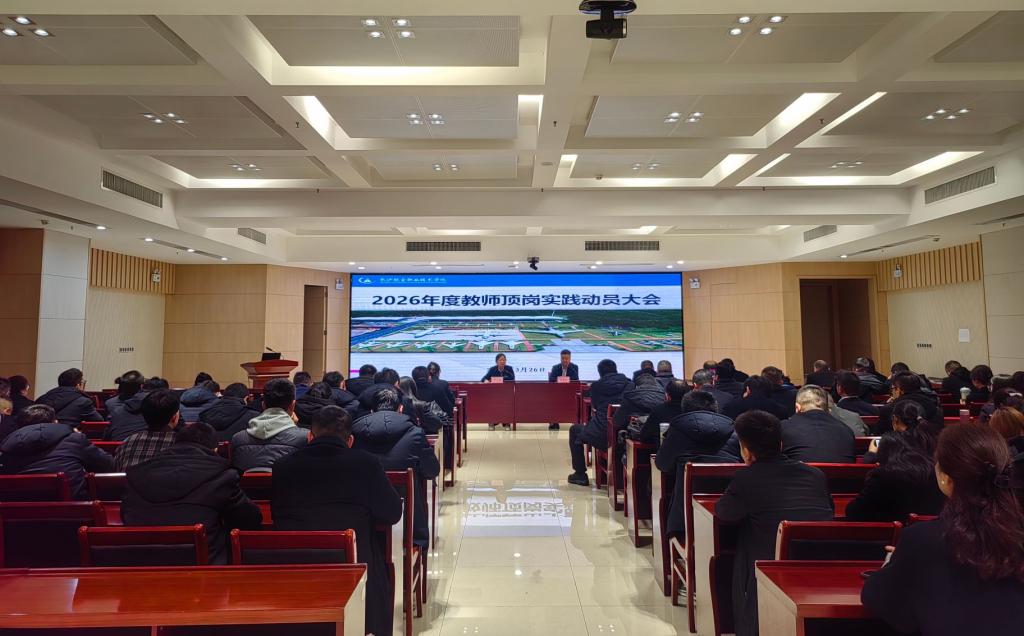 3月26日下午,协同创新中心会议厅内济济一堂,我院2026年赴企业顶岗实践教师动员大会在此举行,为即将奔赴企业开展真岗实践的教师做好最后准备。我院党委副书记严灿出席会议并讲话,为全体顶岗锻炼教师寄予殷切嘱托。各二级学院负责人及96名即将赴企业顶岗实践的教师参加会议。会议由教师发展中心主任彭圣文主持。