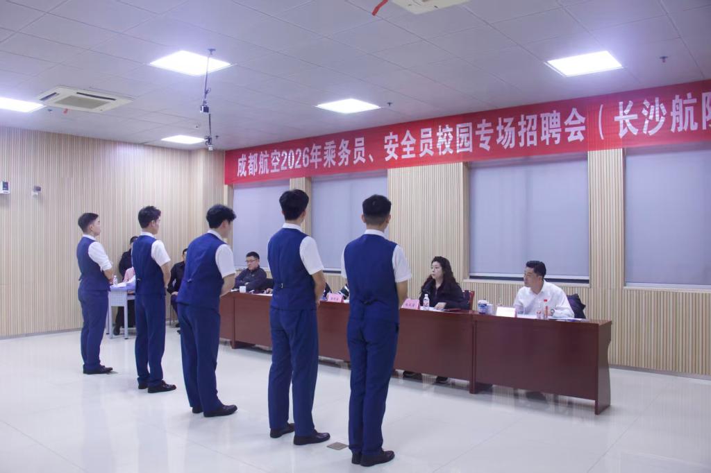 随后,成都航空有限公司在我院面向2024级空中乘务专业学生开展了乘务员、安全员专场招聘选拔。170余名学生以专业的素养和饱满的精神状态参与面试,其出色表现获得了成都航空方面的高度肯定。(管理学院 朱晓倩 徐瑶瑶 供稿)