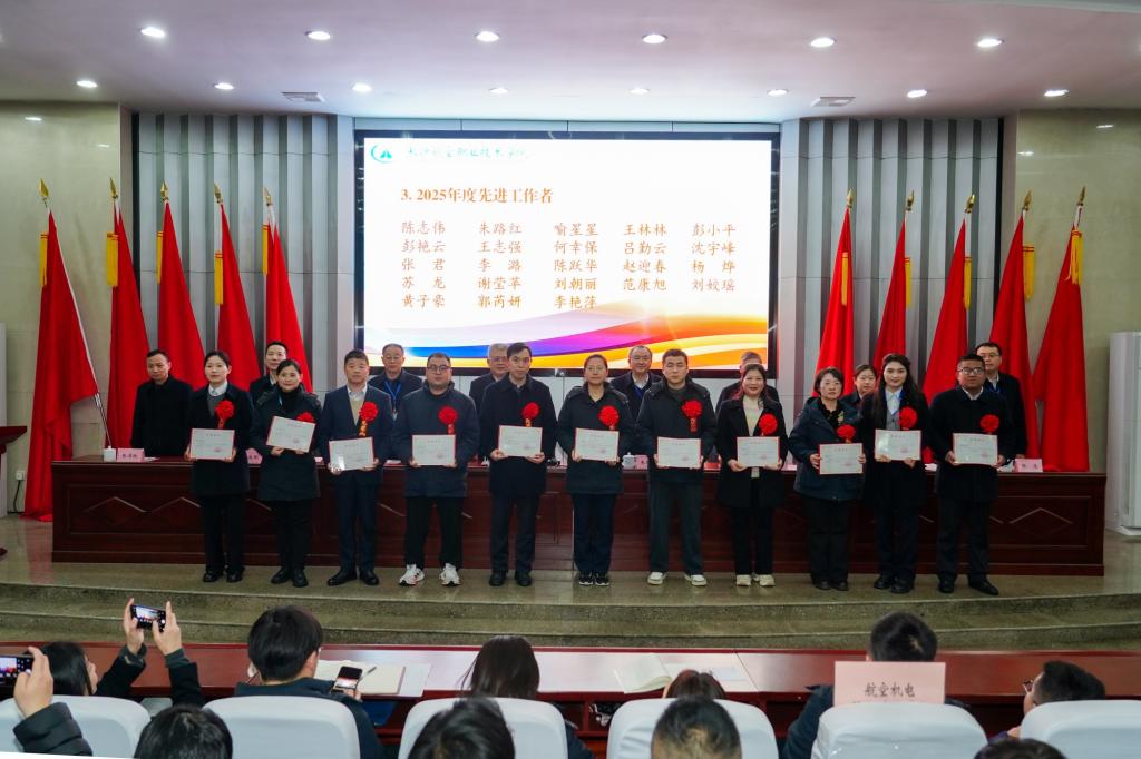 会上,朱国军宣读了学院党委《关于表彰2025年度先进单位和先进个人的通知》。马克思主义学院等6个单位获评先进单位,杨虹等12人获评优秀干部,陈志伟等23人获评院级先进工作者。大会还对张铁芳等2名辅导员年度人物、李焯晨等6名优秀辅(教)导员进行了表彰,对一年来在学院各条战线上表现突出的单位和个人给予充分肯定。他勉励全体受表彰者珍惜荣誉、低砺奋进,持续发挥先锋模范作用,希望各二级单位和全体教职工以先进为标杆、以榜样为动力,坚定发展信心,锚定奋斗目标,脚踏实地、笃行不怠,为“十五五”时期学院高质量发展筑牢根基、再创佳绩。