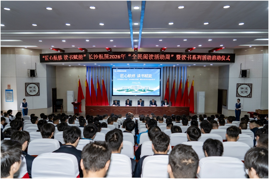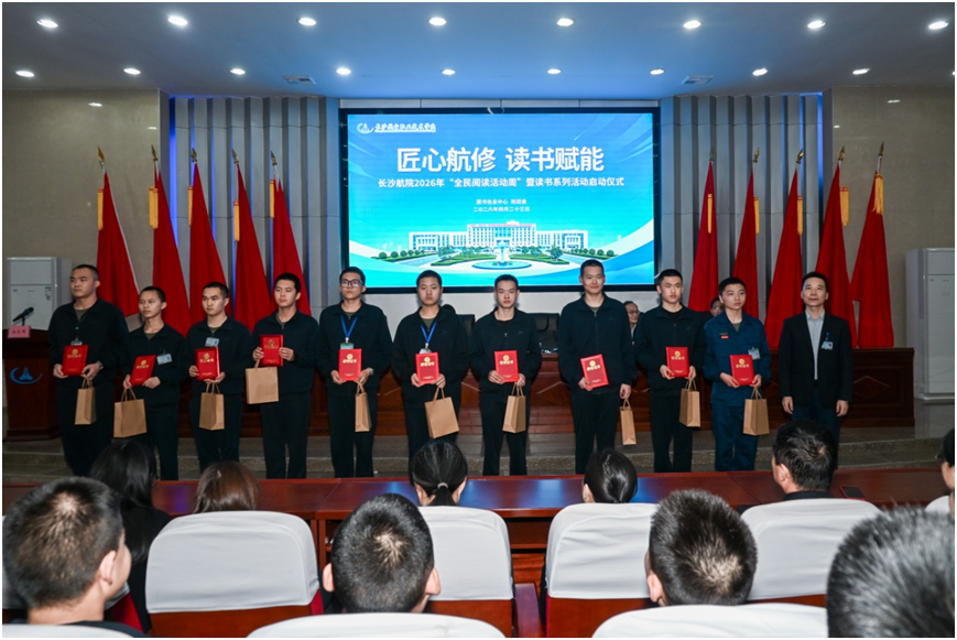 启动仪式上,首先对2025年度读书系列活动“优秀组织奖”获得单位及师生“阅读之星”进行表彰。定向培养学院、航空机电设备维修学院荣获“优秀组织奖”;周俊军等10位教职工、罗理康等10名学生获评2025年度“阅读之星”。随后,朱悦老师与蒋鑫源同学分别代表获奖师生发言,分享读书心得,并发出读书倡议。