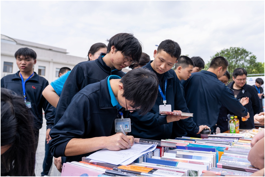 启动仪式结束后,与会领导及师生移步产教融合大楼前坪,参与趣味主题读书活动。贴心的荐购服务、轻松的趣味共读、新颖的AI阅读体验、浓郁的航空艺术氛围,令现场书香四溢,气氛热烈。