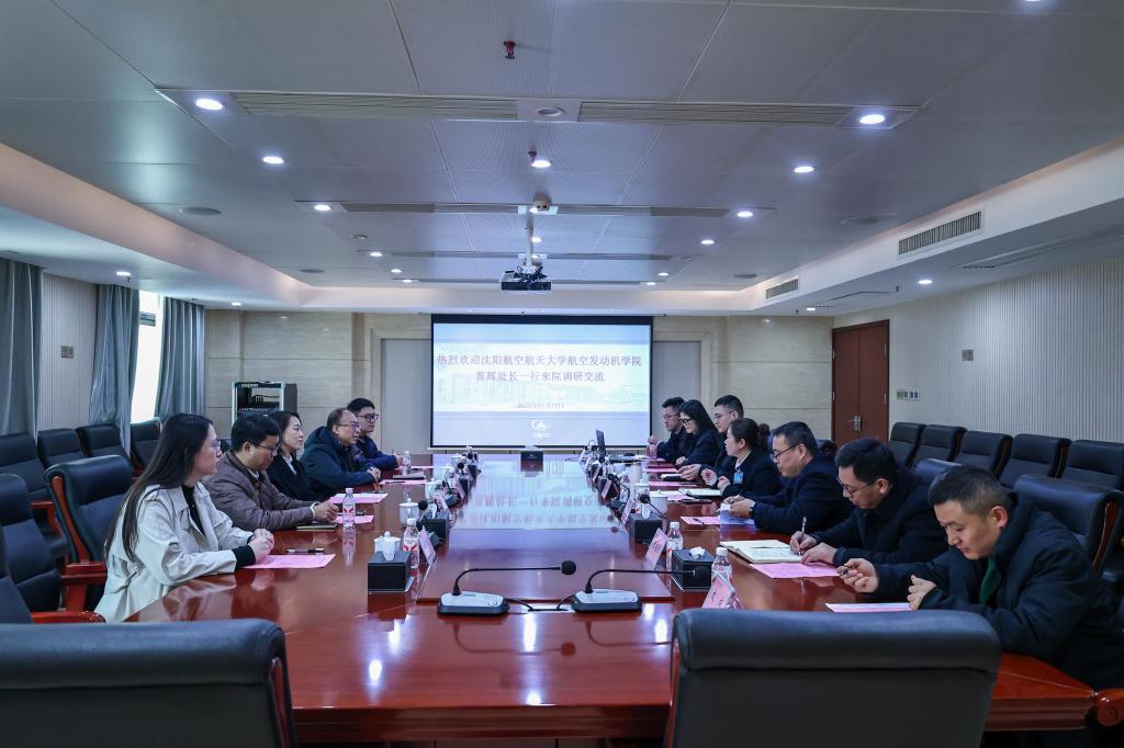 1月15日上午,沈阳航空航天大学航空发动机学院正处级组织员曹辉、副院长刘爱虢等一行5人来我院进行调研交流,我院党委副书记严灿,政治部主任张总等接待了来访者一行,双方在协同创新中心五楼会议室进行了座谈交流。