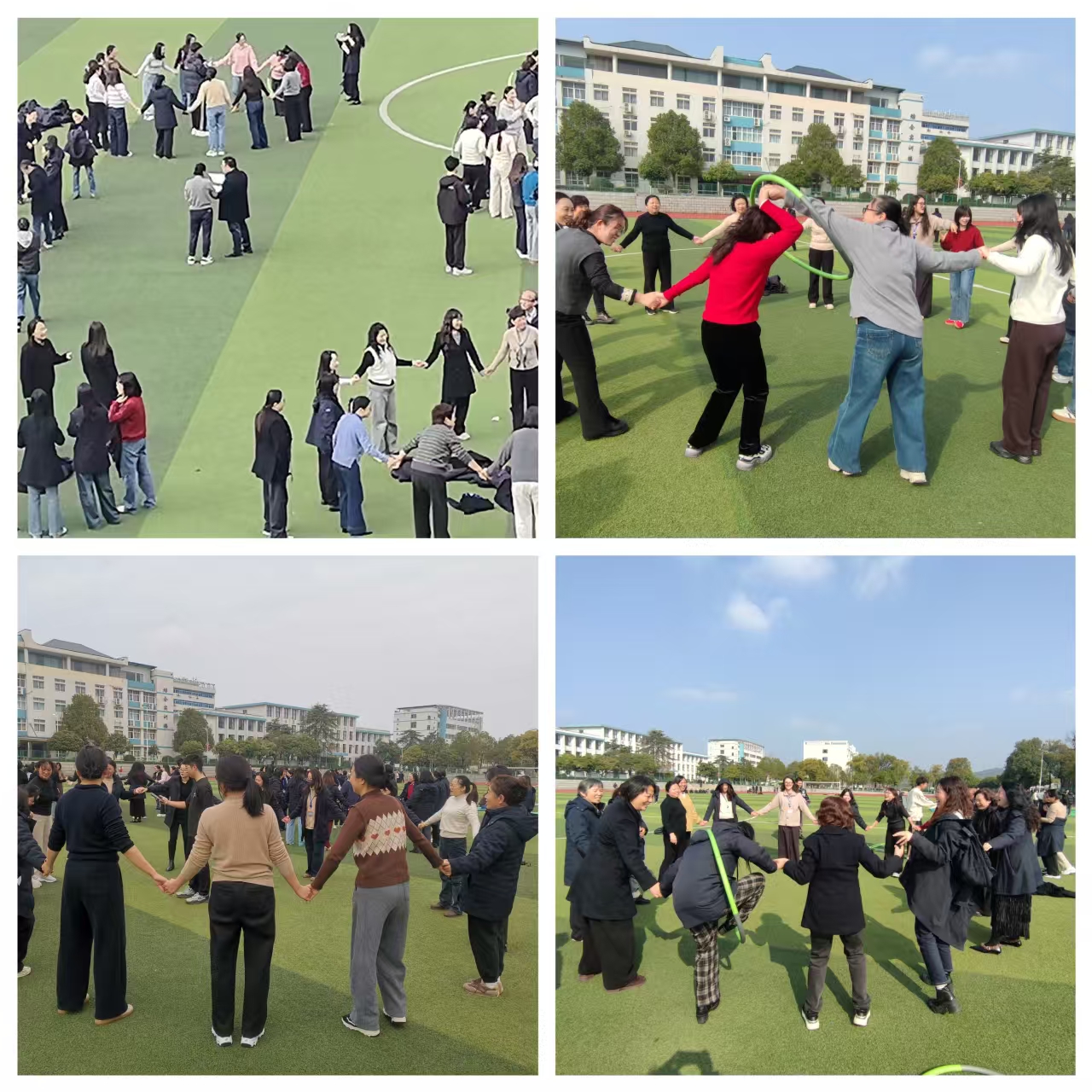 为增添节日气氛,工会还组织了趣味盎然的互动游戏环节。在跳马校区田径场上的欢声笑语中,女职工们配合默契,小小的呼啦圈在彼此间灵巧穿梭,既展现了活力与风采,也拉近了心与心的距离。这一刻,美丽与自信尽情绽放,团结与奋进的精神在轻松愉悦的氛围中悄然凝聚。