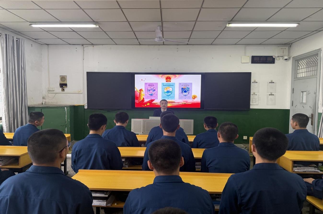 本次活动以“统筹发展和安全,护航‘十五五’新征程”为主题,采取“线上+线下”融合模式,通过电子屏宣传、主题班会宣讲、线下签名、观看警示教育片、班级群及家长群推送宣传海报等多元形式,构建起立体化、沉浸式的国家安全宣传教育矩阵。在签名环节,全体师生在主题横幅上郑重签名;主题班会上,教导员老师系统讲解了总体国家安全观、维护国家安全的义务与权利等内容,深刻剖析了政治安全领域的渗透风险、经济安全领域的金融陷阱、网络安全领域的数据泄露等现实威胁;观看《无声的较量》等警示教育片时,全体师生聚精会神,完全沉浸于影片所呈现的情节与氛围之中;交流讨论环节,大家围绕《国家安全法》《反分裂国家法》,结合学习与生活实际展开热烈讨论,踊跃发言。无人机2506班白飞宇同学感慨道:“以前总觉得国家安全离自己很遥远,通过这次活动才明白,朋友圈里的一条定位、工作中的一份文件,都可能关乎国家安危。”