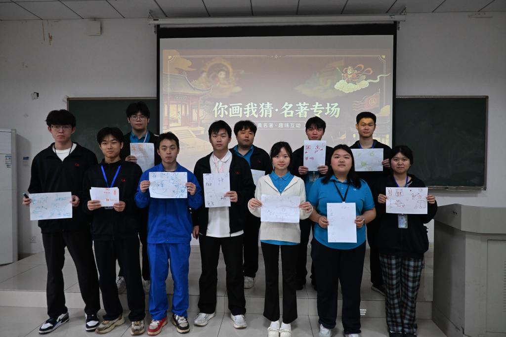 “你画我猜·名著专场”活动以团队协作形式开展,将名著中的人物、场景、情节转化为竞猜内容。活动现场,同学们分组配合,在限定时间内完成作答,以轻松活泼的形式检验阅读积累。该活动将知识性与趣味性相结合,改变了传统阅读活动的单向输出模式,提升了学生主动参与的积极性。