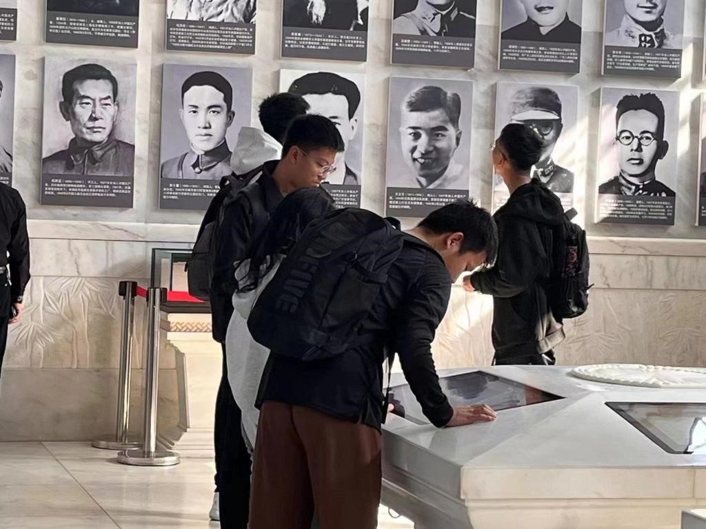进入纪念陈列馆,殿堂正面竖立着奠基纪念碑,上面刻着“近百年来,特别是近三十年来为中国人民解放事业而光荣牺牲的湖南人民英雄烈土们永垂不朽!”。纪念馆左右两面展厅以时间线为轴,以现代化信息技术手段加持,同学们亲自体验与百余位湘籍烈士跨时空“相见”。